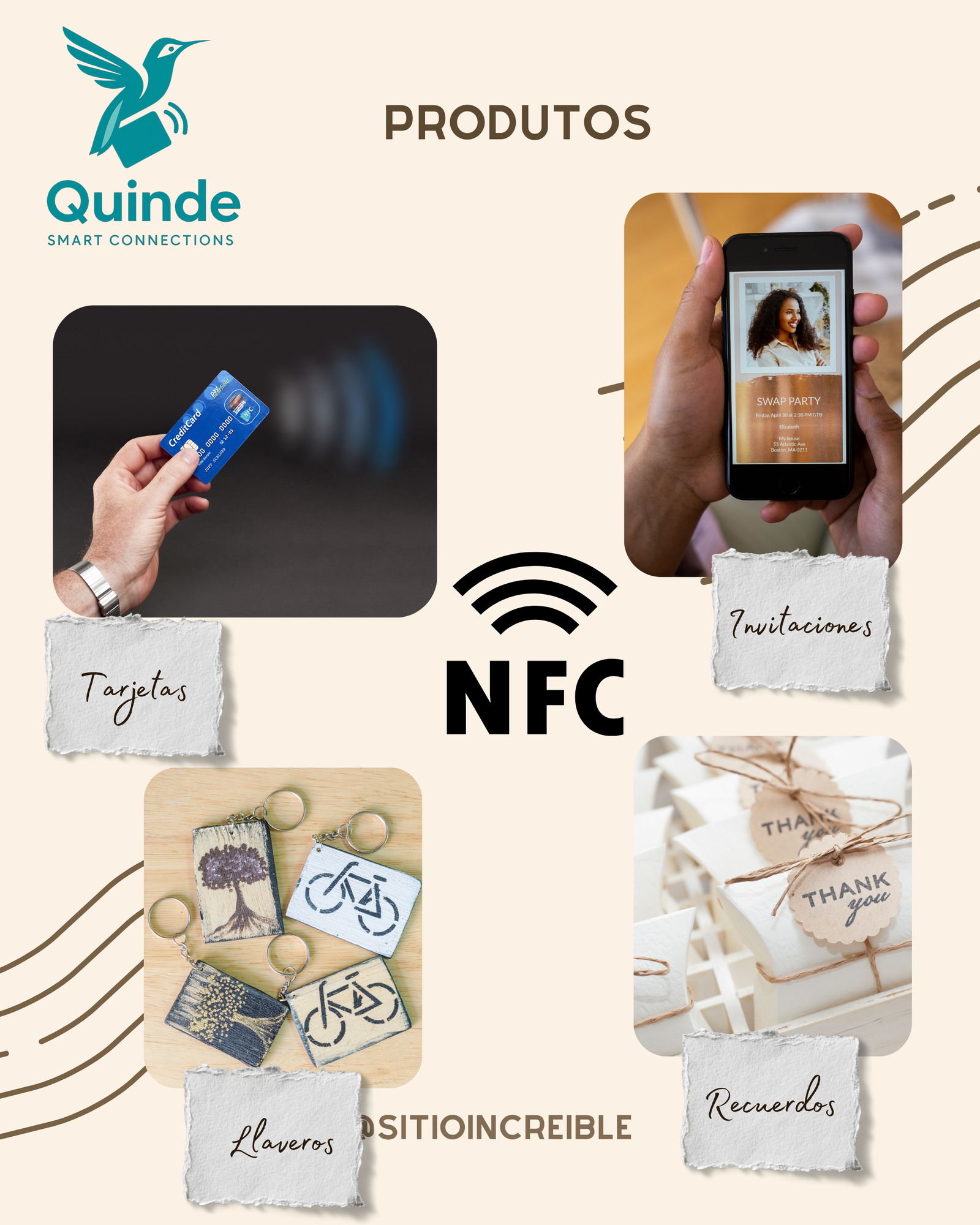 Nuestras tarjetas NFC permiten compartir tu Quinde Link sin contacto físico. Son resistentes, personalizables y compatibles con smartphones modernos. Reducen la necesidad de imprimir folletos y tarjetas de papel. Perfectas para eventos, promociones o networking corporativo. Se integran con tus perfiles digitales y facilitan el acceso a información clave. Su diseño innovador y ecológico refuerza la imagen de tu marca. Mejoran la interacción con clientes y asistentes de manera práctica. Son una solución tecnológica y sostenible para la comunicación moderna.